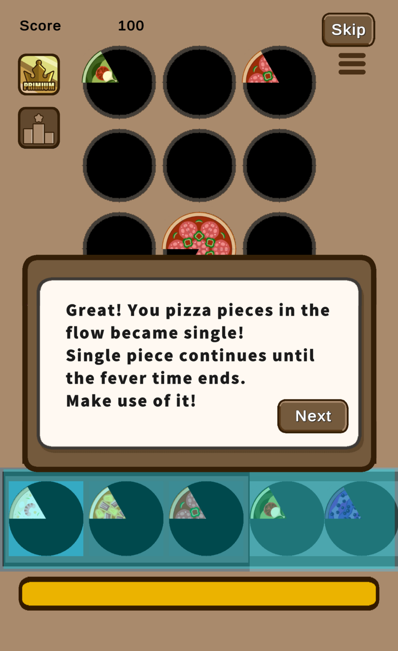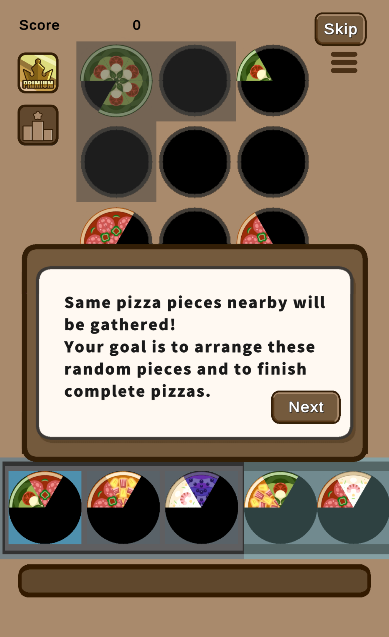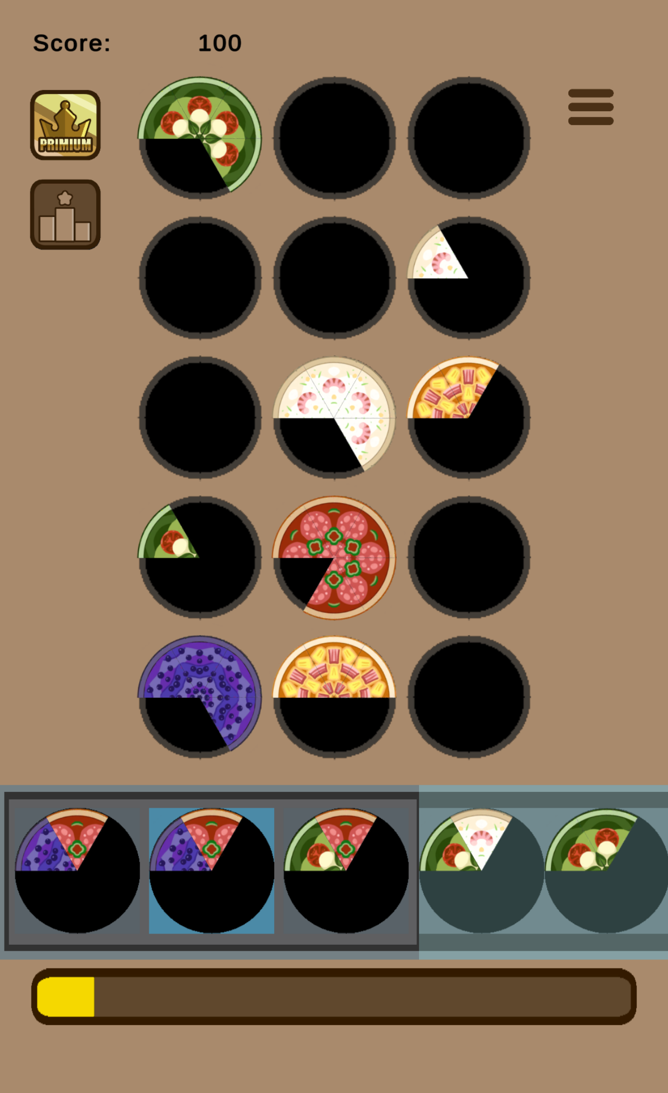・Collect 6 matching slices to complete a pizza and score!